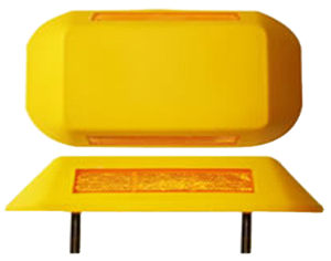 Dispositivos de segurança no tráfego como: tachões, balizadores cilíndricos de alta performance e catadióptricos de barreira.